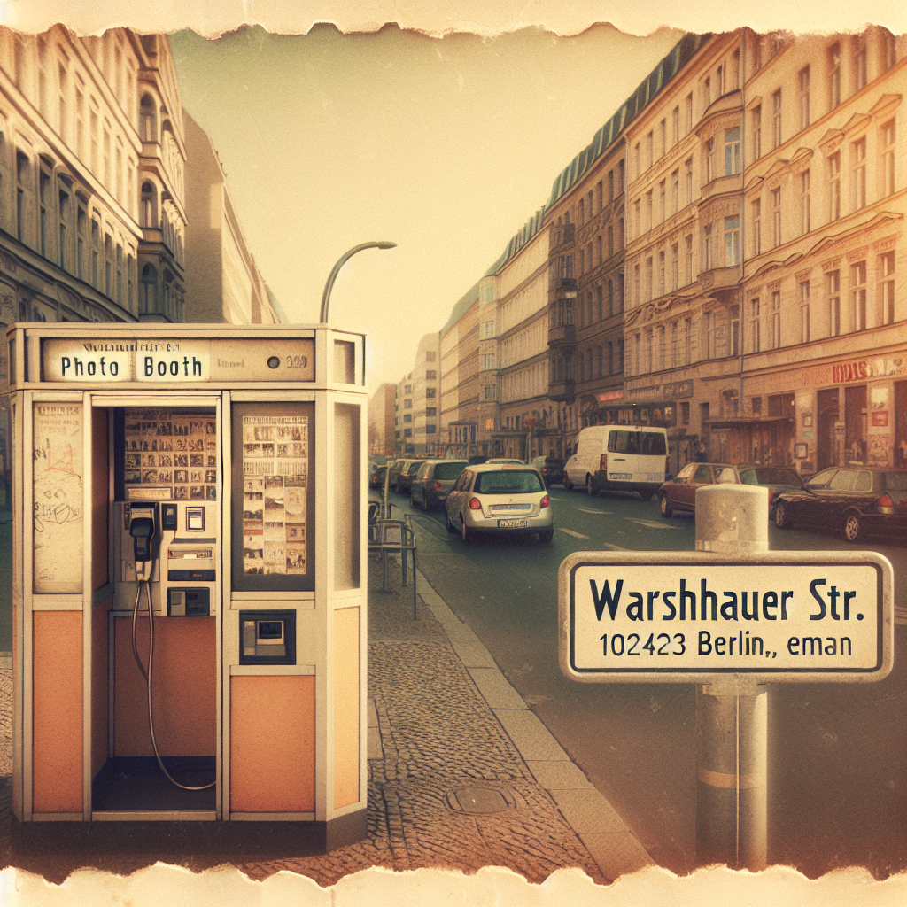 The photo booth is located at Warschauer Str., 10243 Berlin, Berlin, Germany. For the best experience, we recommend planning your visit during normal business hours when the location is most accessible.